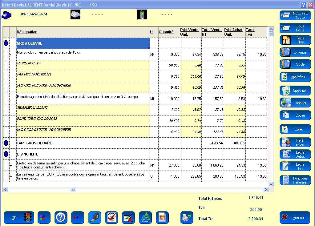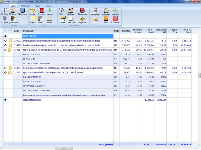 Correction impressions des sous détails d’ouvrages dans les factures.