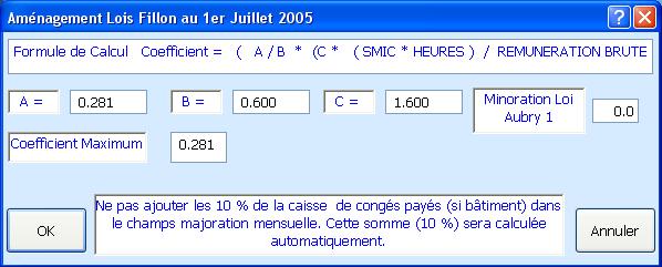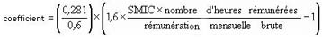 | I - Cas général | C = (T / 0,6) x [(1,6 x SMIC annuel / rémunération annuelle brute) - 1] | |