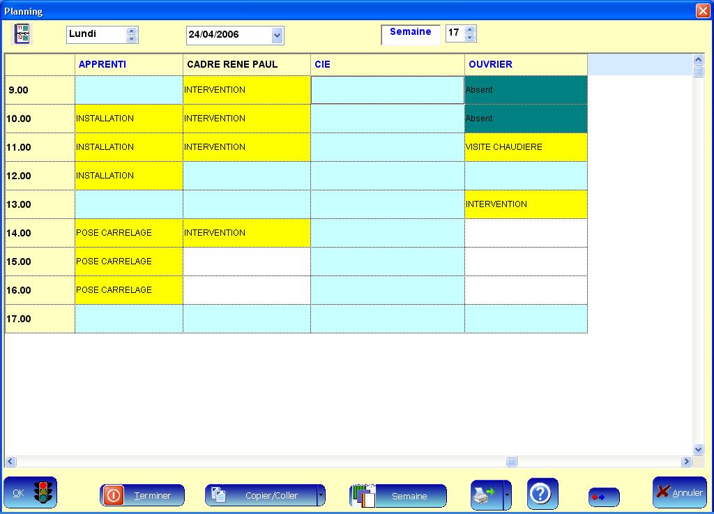 Voici pour vous donner une idée quelques écrans de ce planning.