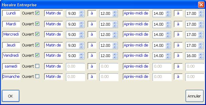 Le paramétrage des horaires d'entreprise: